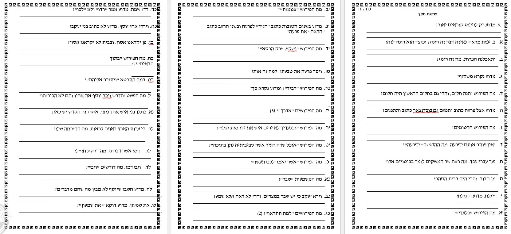 כיתה ח' 59 שאלות פרשת מקץ