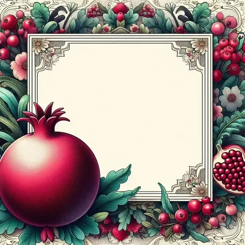 כרטיס שנה טובה – מסגרת מרובעת, רימונים ופרחים (1)