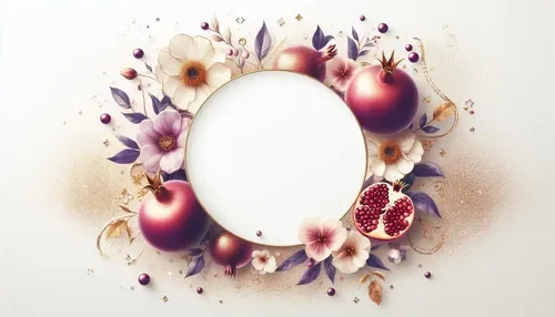 כרטיס שנה טובה – מסגרת עגולה, רימונים ופרחים (5)