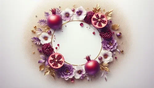 כרטיס שנה טובה – מסגרת עגולה, רימונים ופרחים (6)
