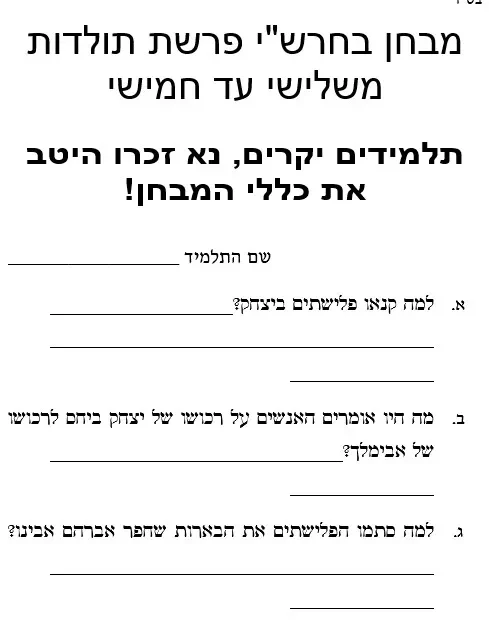 מבחן בחרש"י פרשת תולדות משלישי עד חמישי