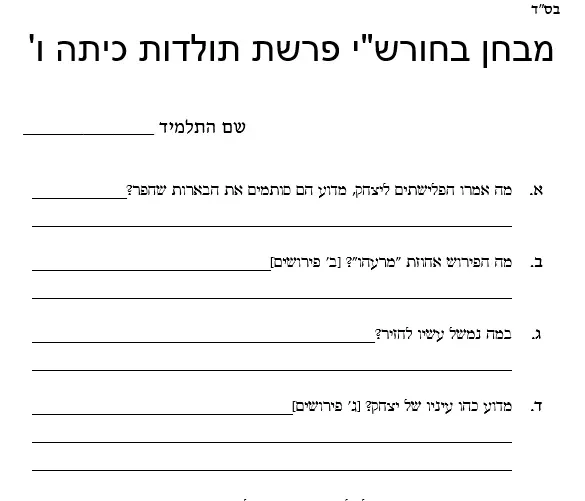 מבחן חומש תולדות – כיתה ו