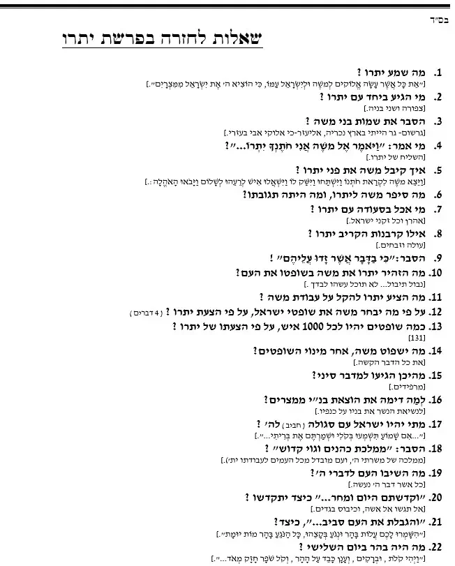 מבחן יתרו – 41 שאלות ותשובות