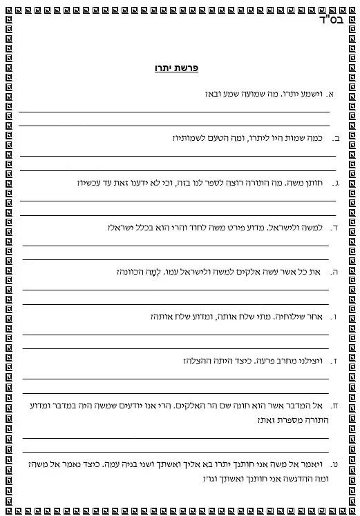 מבחן יתרו – 69 שאלות