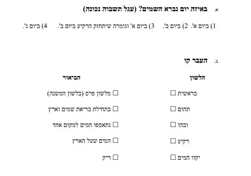 מבחן עד יום שני – חו"ר – 4 שאלות