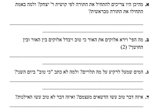 מבחן על ששת ימי המעשה – חו"ר 7 שאלות
