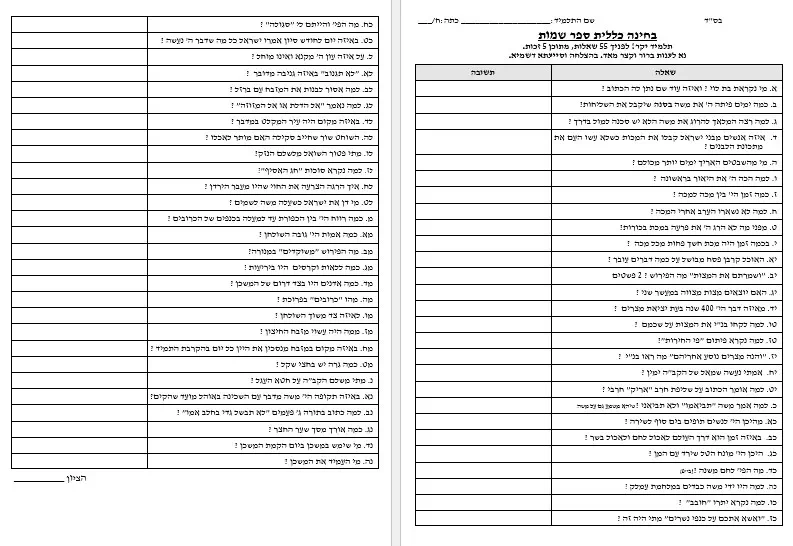 מבחן פומבי ספר שמות – 55 שאלות בלי תשובות