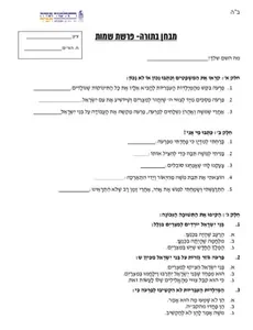 מבחן פרשת שמות (חב"ד אופקים)