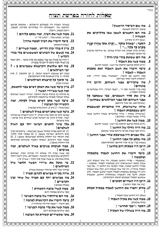 מבחן תצוה – 55 שאלות ותשובות