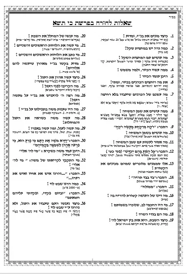‏‏ מבחן תשא – שאלות לחזרה