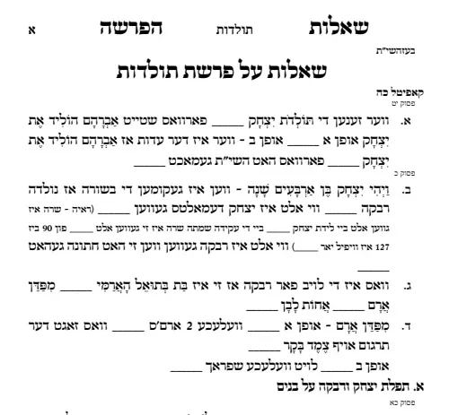 מבית שביל הישר – שאלות באידיש על פרשת תולדות