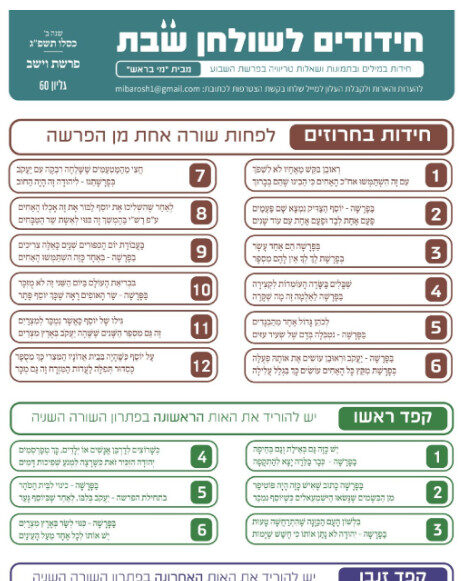 חידודים לשולחן שבת (שנת פ"ג) לפרשת וישב
