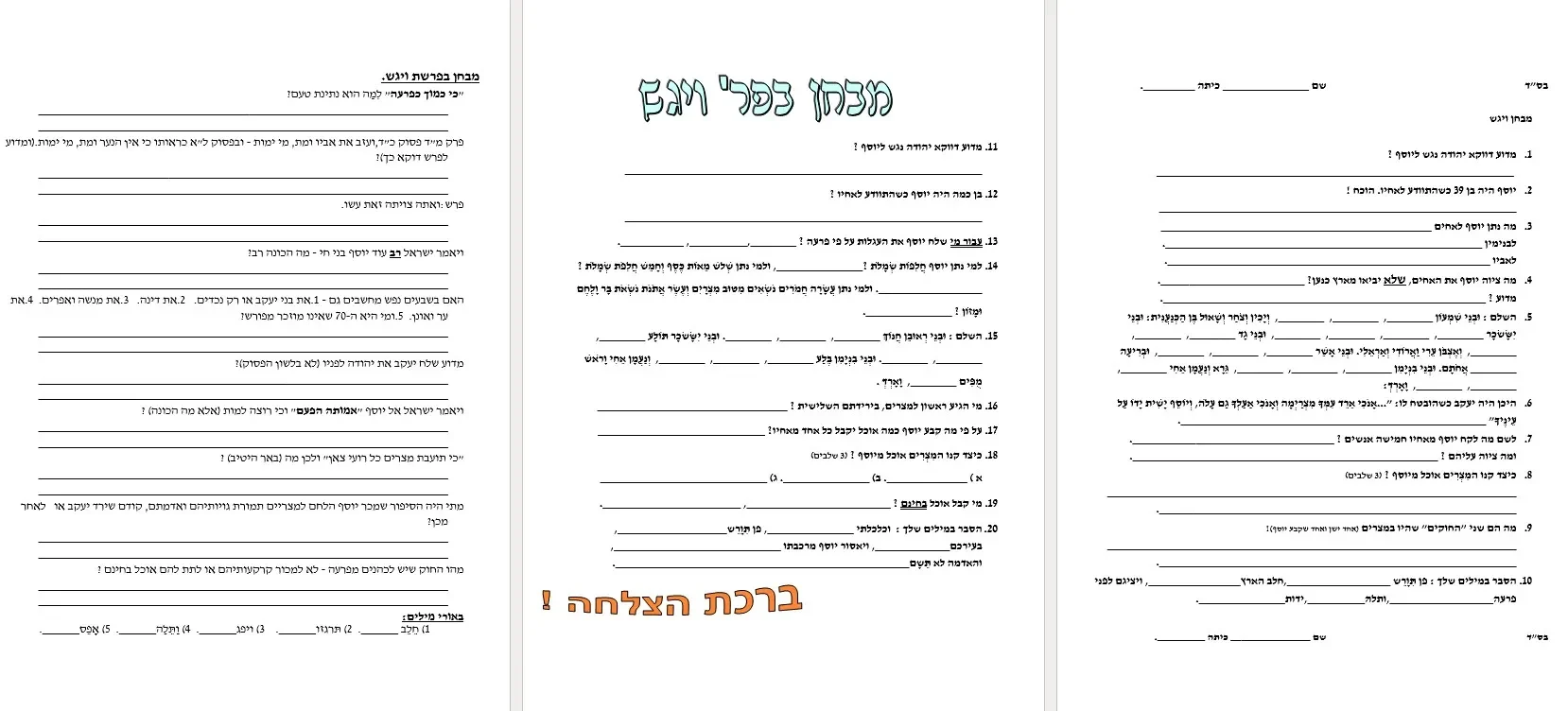 מקבץ – מבחר שאלות חזרה ומבחנים – ויגש