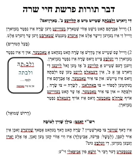 מקבץ דבר תורות לפרשת חיי שרה – שיינע אויסגעקליבענע דבר תורות – אידיש