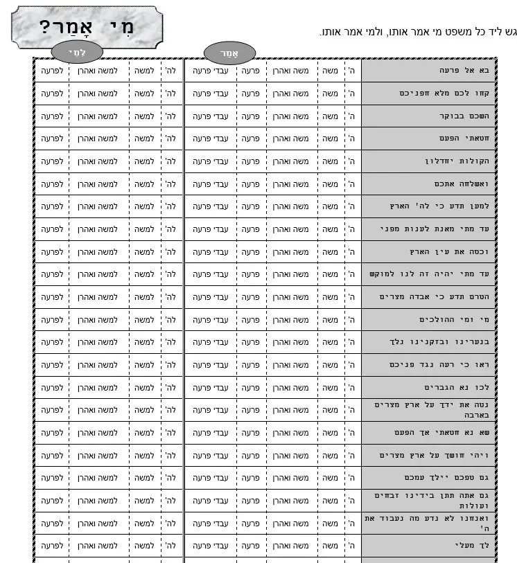 מקבץ דפי עבודה 2 וארא