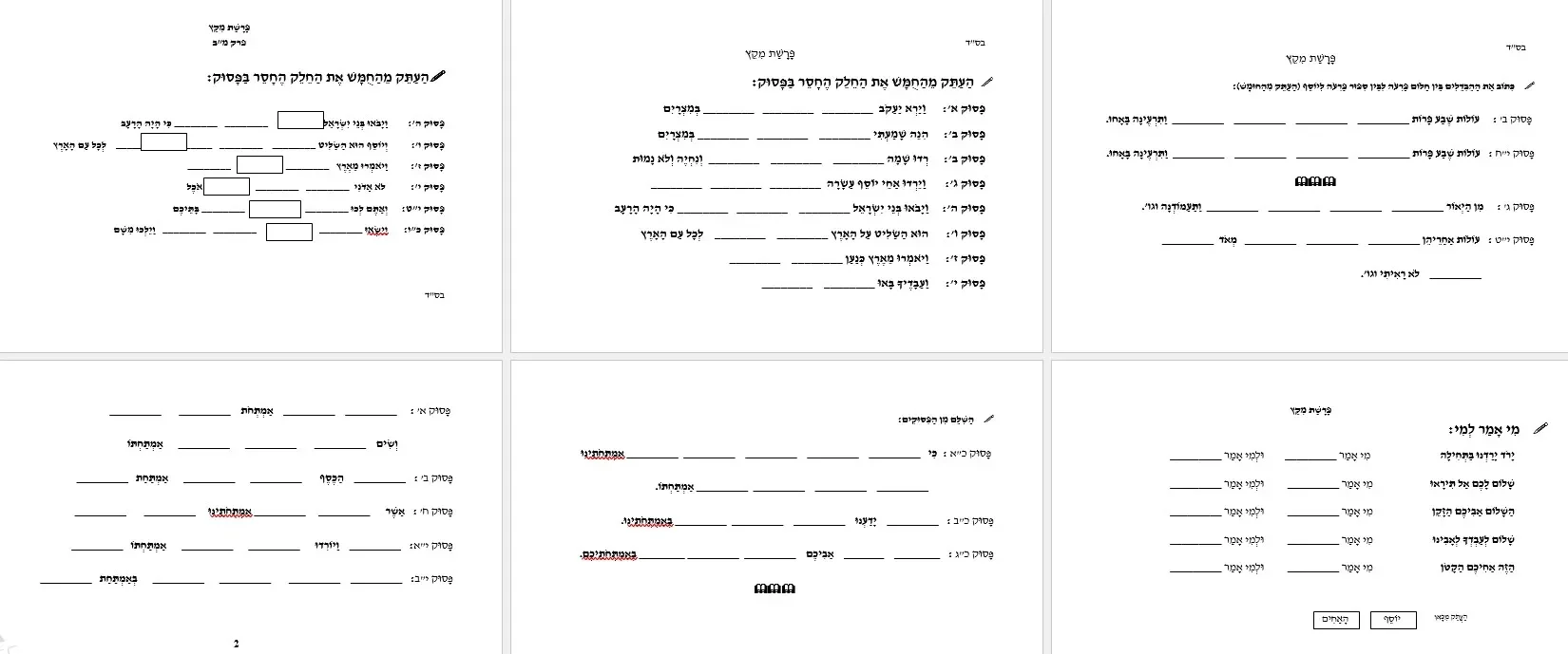 מקבץ דפי עבודה 2 מקץ