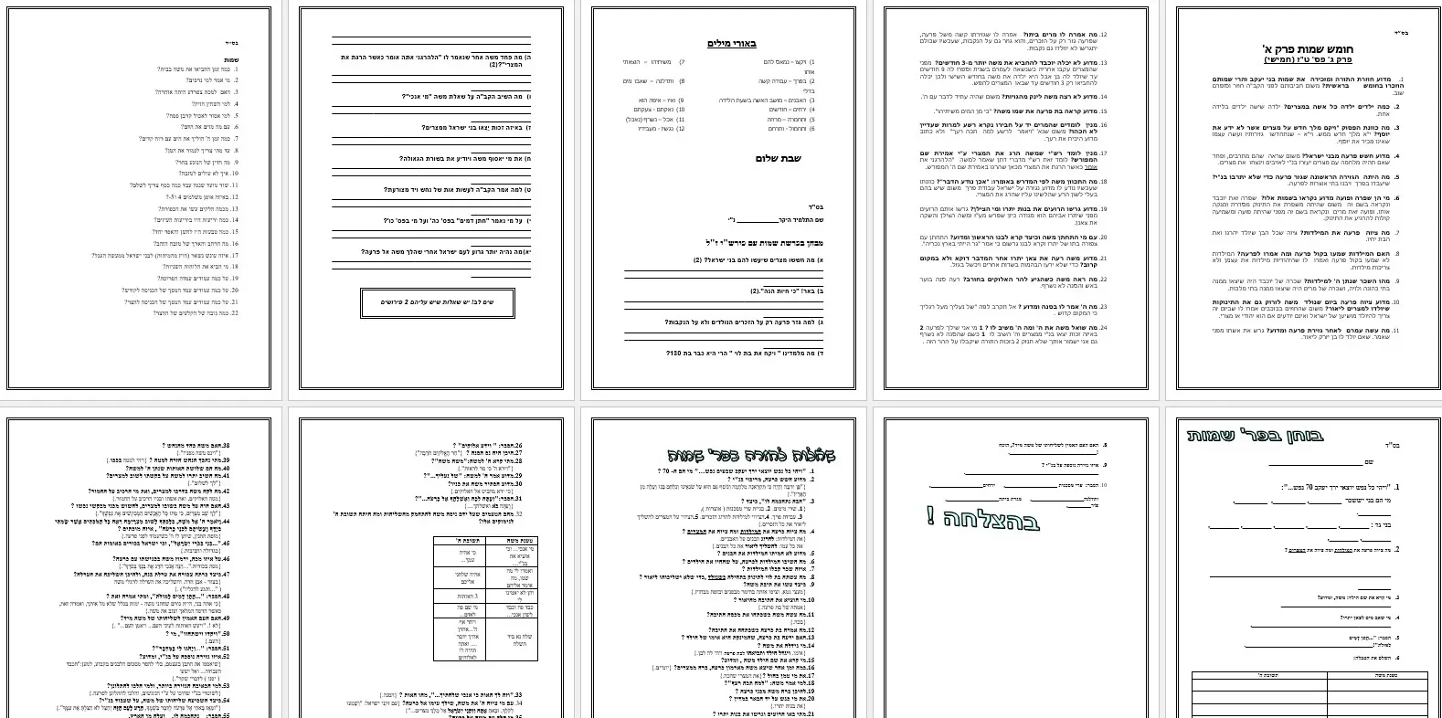 מקבץ מבחנים ושאלות לפרשת שמות