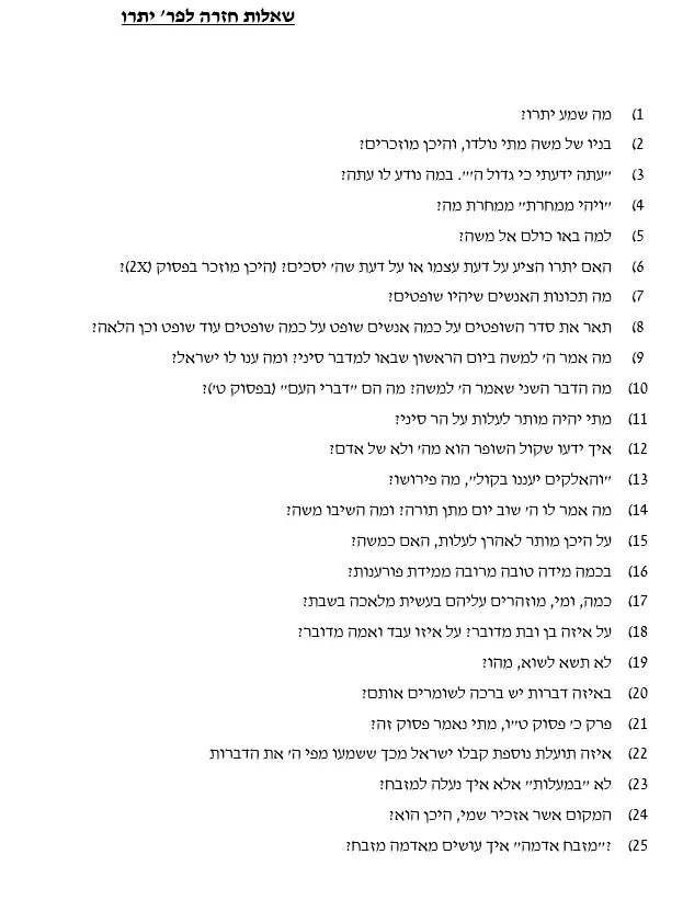 מקבץ שאלות לחזרה ולמבחן יתרו
