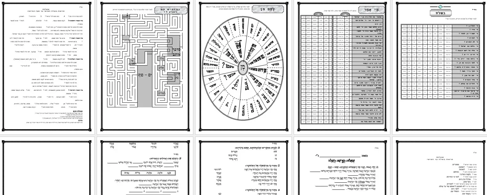 מקבץ 9 דפי עבודה בשלח