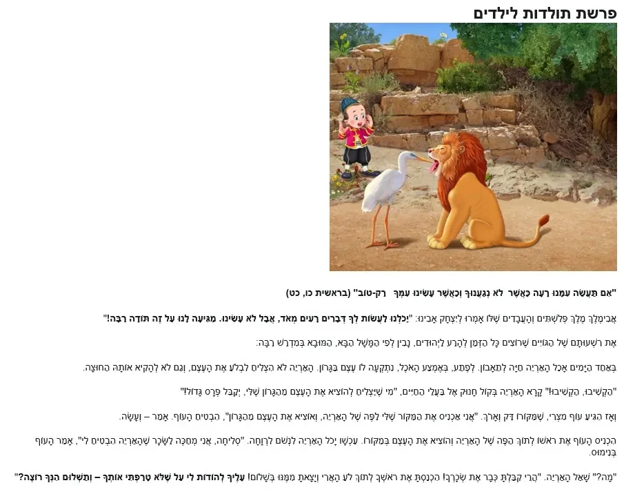 סיפור האריה והעוף המצרי – מנוקד עם תמונה – מלמד לתלמידים