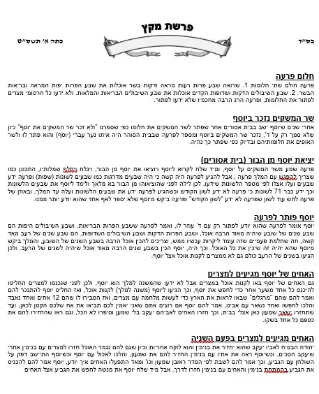 סיפור הפרשה – כיתה א' – מקץ