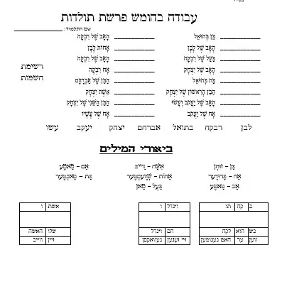 עבודה הבנה + ביאורי מילים