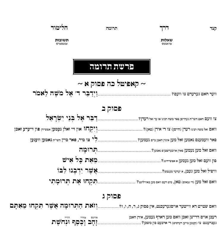 עברי טייטש – פרשת תרומה – קונטרס דרך הלימוד
