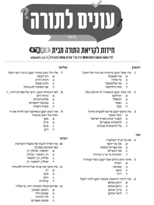 עונים לתורה – ויחי