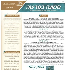 עלון טמונה בפרשה לפרשת מקץ – (שנת פ"ד)