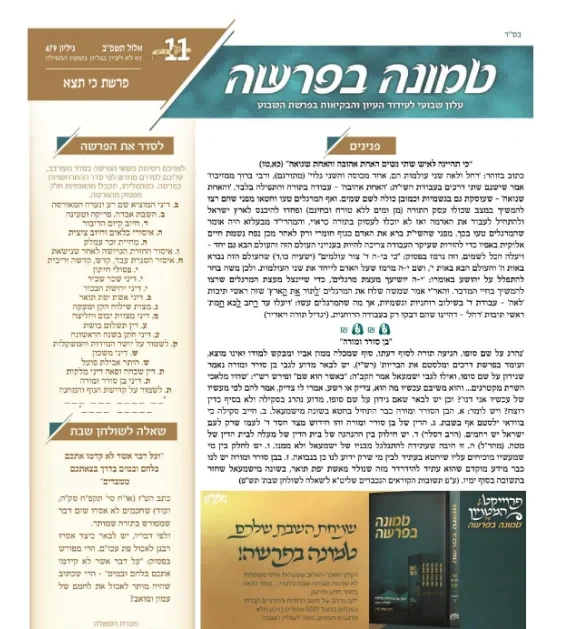 עלון טמונה בפרשה פ"ב פרשת כי תצא