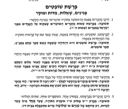 פנינים וחידודים עם תשובות לפרשת שופטים – פרחי הדגל