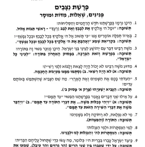 פנינים שאלות ומוסר עם תשובות לפרשת ניצבים (פרחי הדגל)