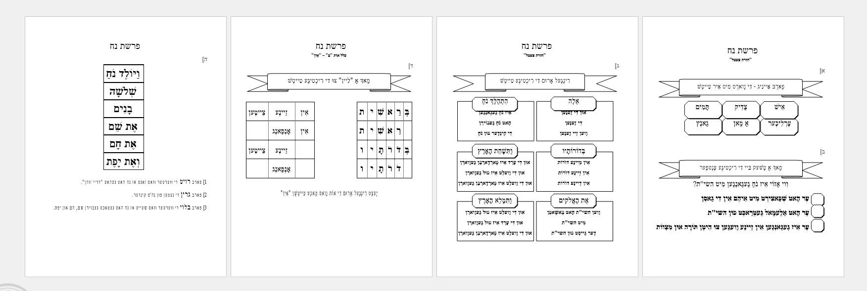 פרשת נח – דף עבודה – הבנה + טייטש – אידיש