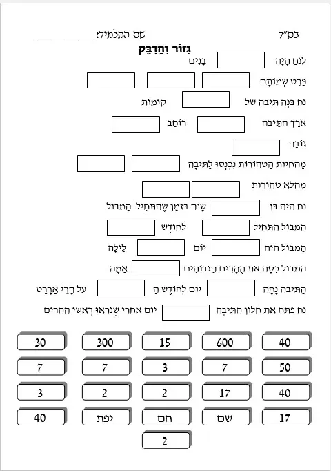 פרשת נח – דף עבודה – הבנת הנקרא – גזור והדבק