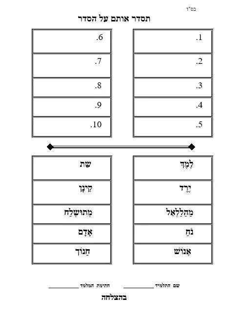פרשת נח – דף עבודה – הבנת הנקרא + ידיעות כלליות – אדם עד נח
