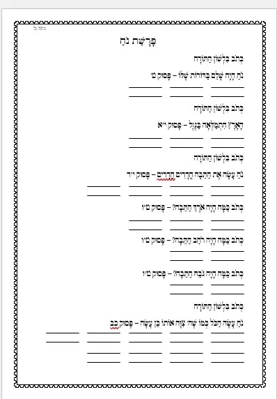 פרשת נח – דף עבודה – הבנת הנקרא – כתוב בלשון המקרא