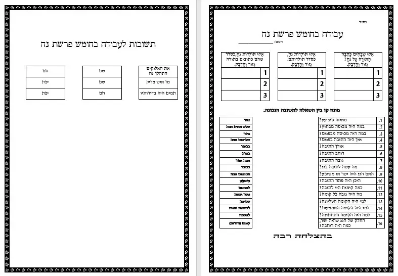 פרשת נח – דף עבודה – הבנת הנקרא – מתח קו בין השאלה לתשובה הנכונה