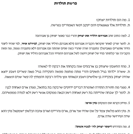 צ"ד שאלות בפרשת תולדות