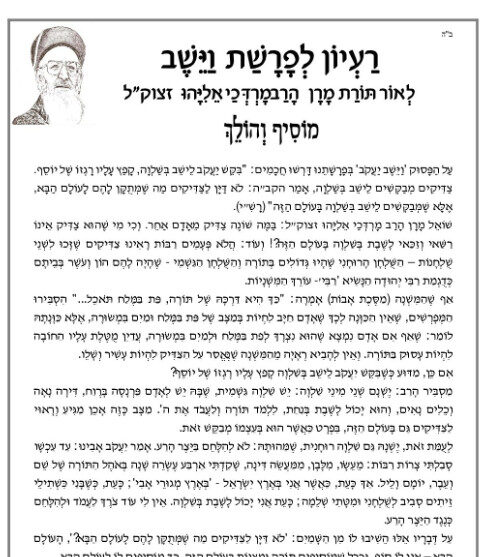 רעיון לפרשת וישב – (מתורת הרב מרדכי אליהו)