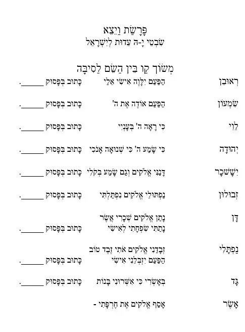שִׂבְטֵי יָ-הּ עֵדוּת לְיִשְׁרָאֵל – ויצא דף עבודה