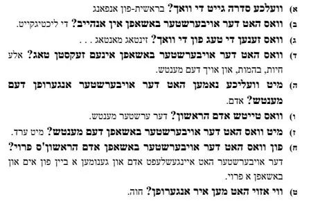 שאלות ותשובות – אידיש – ידיעות – 32 שאלות