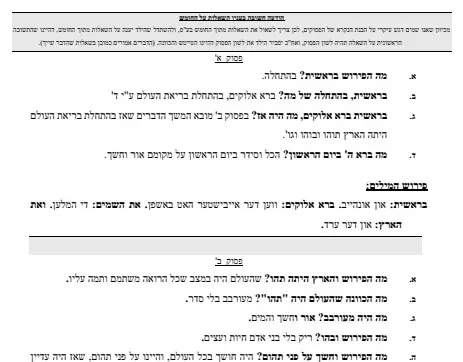 שאלות ותשובות – על הבנת הנקרא – עד פסוק ה