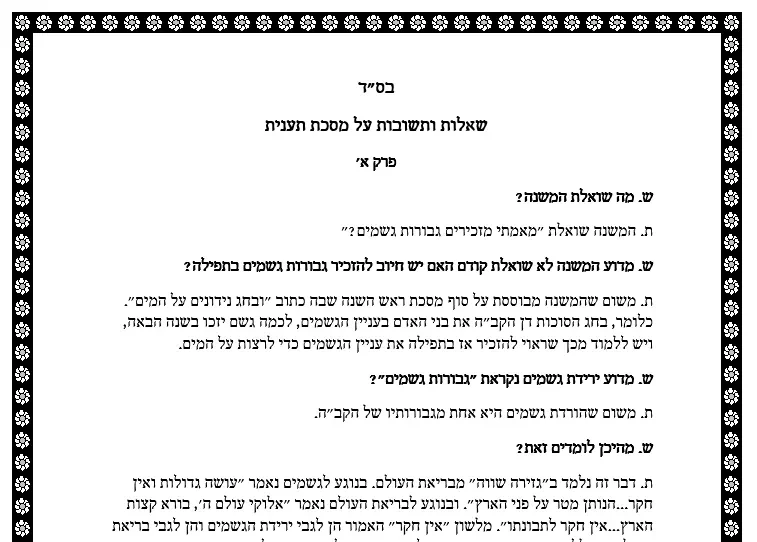 שאלות ותשובות על כל מסכת תענית