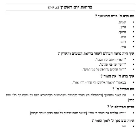 שאלות ותשובות – שינון – בראשית – כל הפרשה