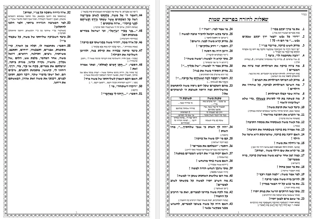 שאלות חזרה 55 שאלות בחומרש"י – פרשת שמות