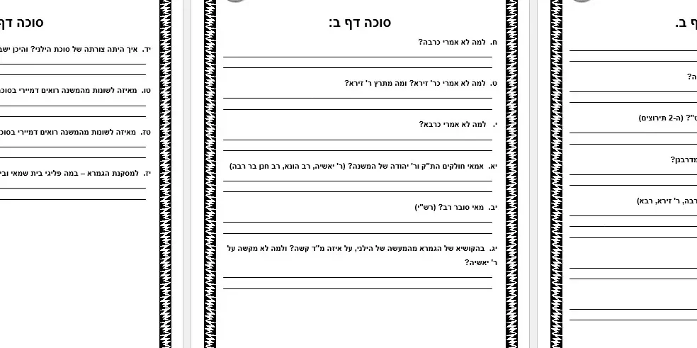 שאלות לחזרה – מסכת סוכה גמרא – על דפים ב-ו – פרק א'