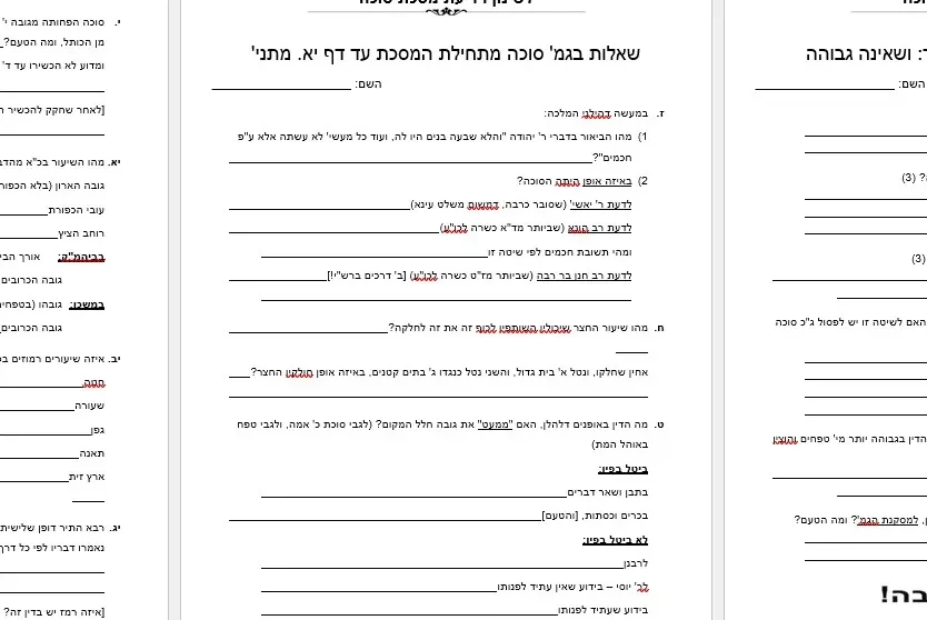 שאלות לחזרה – מסכת סוכה גמרא – על דפים ב-כח