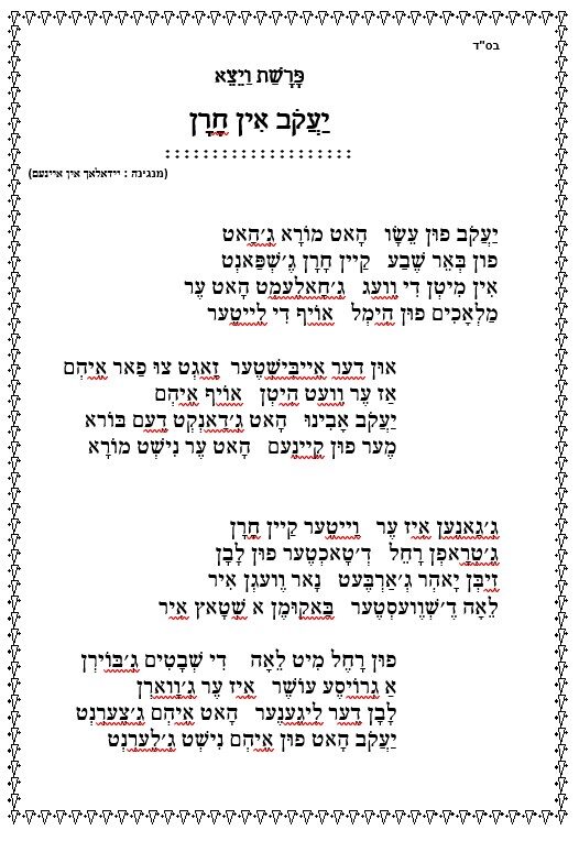 שיר ויצא – יידיש – יעקב אין חרן