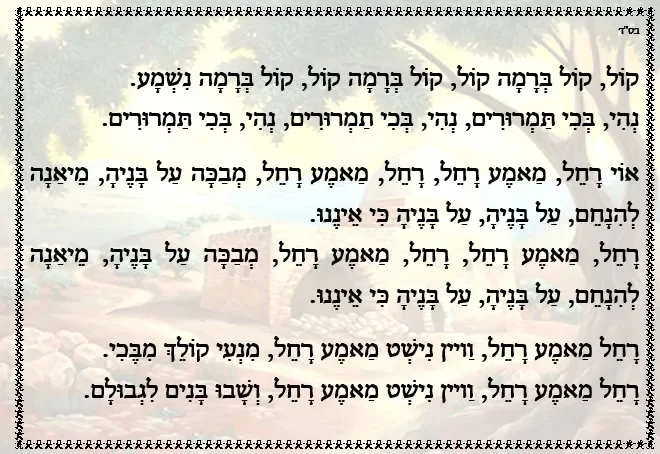 שיר כה אמר ה' – תמונת רקע קבר רחל אמנו – תוספת מילים באידיש