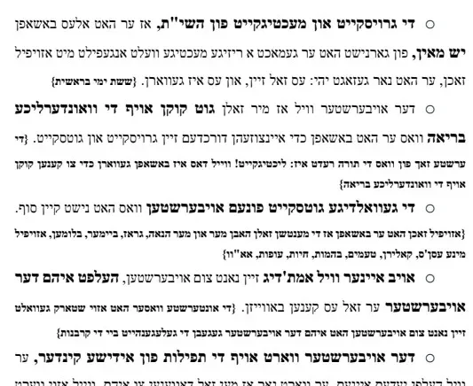 תוכן הפרשה – ידיעות מושגים מידות וכו' – אידיש